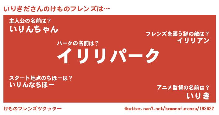 | 男性向けラノベタイトル風あだ名 | 『魔弾の王といりきだ』『いりきだの憂鬱』 |