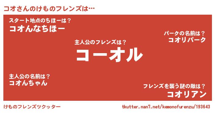 | ファンタジー風あだ名 | 『コオディッシュ』『エターナルコオー』 |