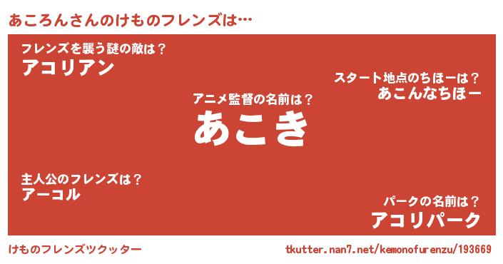 | ヒーロー風カッコイイあだ名 | 『銀牙騎士アコ』『正義の使者あころん』 |