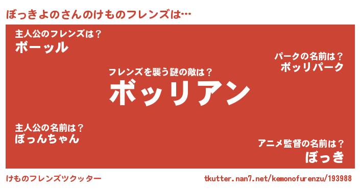 | ポケモン風あだ名 | 『ボーッイ』『ボックウザ』 |