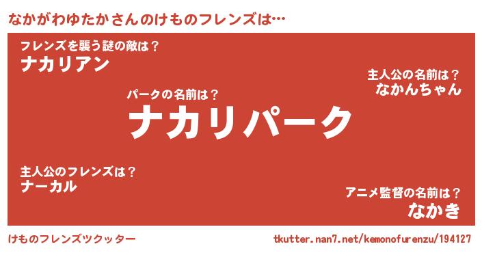 | 料理風あだ名 | 『なかがわゆたかごはん』 |