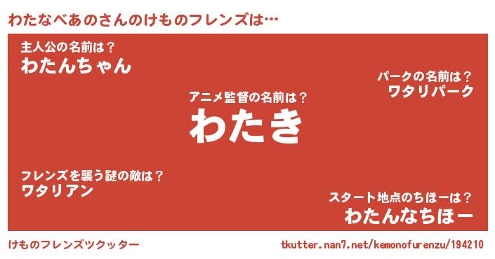 | ピコ太郎風あだ名 | 『ワタ二郎』『ワコ太郎』『ピワ二郎』 |