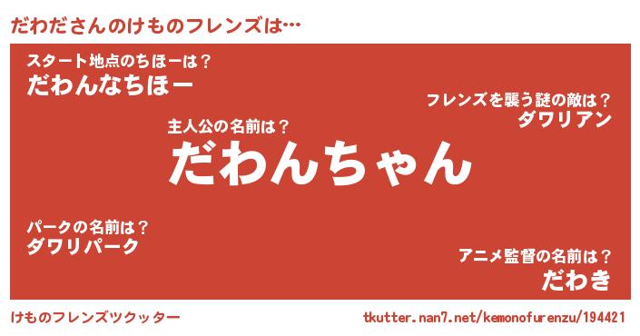 | 2回繰り返すあだ名 | 『だわだわ』『わしゃわしゃ』 |