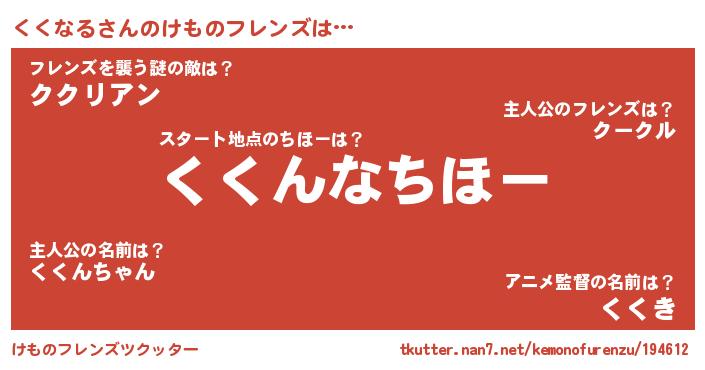 | 男性向けラノベタイトル風あだ名 | 『くくなるに滅ぼされるだけの簡単なお仕事です』 |