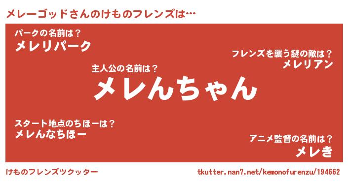 | ヒーロー風カッコイイあだ名 | 『仮面メレダー』『スーパーメレーゴッド』 |