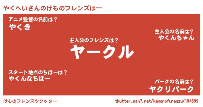| ヒーロー風カッコイイあだ名 | 『ネオヤクヘイ』『天弓騎士ヤク』 |