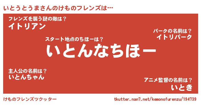 | ポケモン風あだ名 | 『イトウダネ』『イトゴンZ』 |