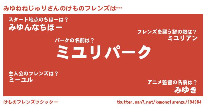 | 意味不明あだ名 | 『自称みゆねねじゅり』 |