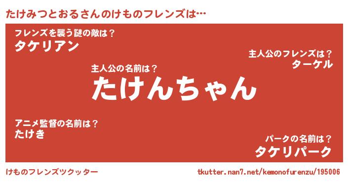 | 男性向けラノベタイトル風あだ名 | 『うちのたけみつとおるが世界を掌握している!』 |