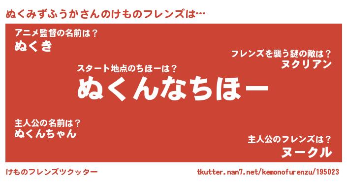 | 2回繰り返すあだ名 | 『ぬぬくく』『ぬるぬる』『ぐにぐに』 |