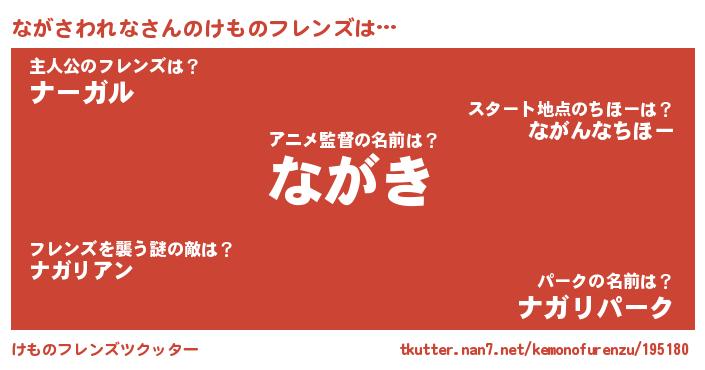 | 男性向けラノベタイトル風あだ名 | 『ながさわれなに滅ぼされるだけの簡単なお仕事です』 |