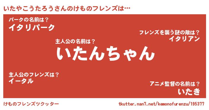 | ファンタジー風あだ名 | 『イタフェル』『ゼイタトゥ』 |