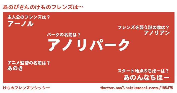| 意味不明あだ名 | 『自称あのぴ』『永久保存あのぴ』 |