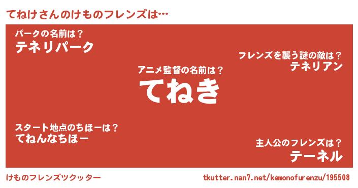 | 意味不明あだ名 | 『住所不定無職てねけ(4歳)』『自称てねけ』 |