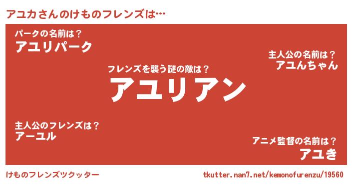 | 意味不明あだ名 | 『住所不定無職アユカ(77歳)』『自称アユカ』 |