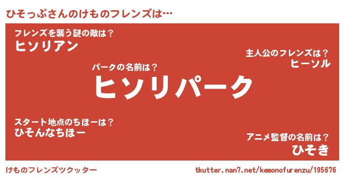 | 意味不明あだ名 | 『自称ひそっぷ』『ニラ科ひそっぷ属』 |