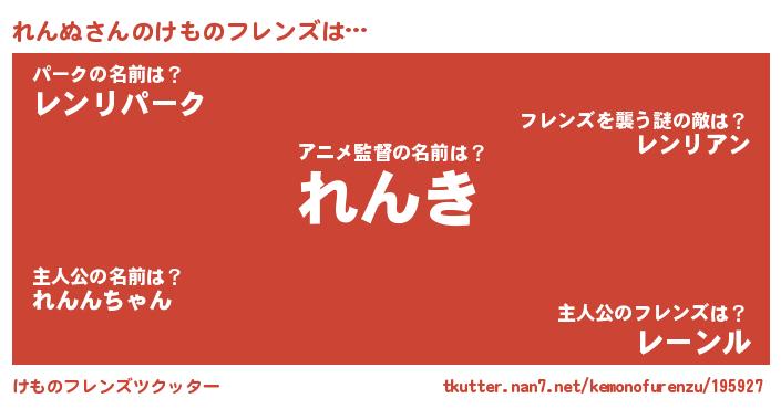 | 意味不明あだ名 | 『とにかく怪しいれんぬ』『自称れんぬ』 |