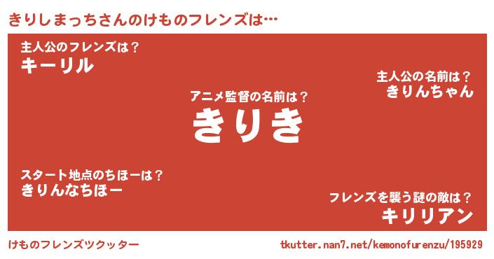 | ピコ太郎風あだ名 | 『キリ十郎』『ピコキ郎』『キキ太郎』 |