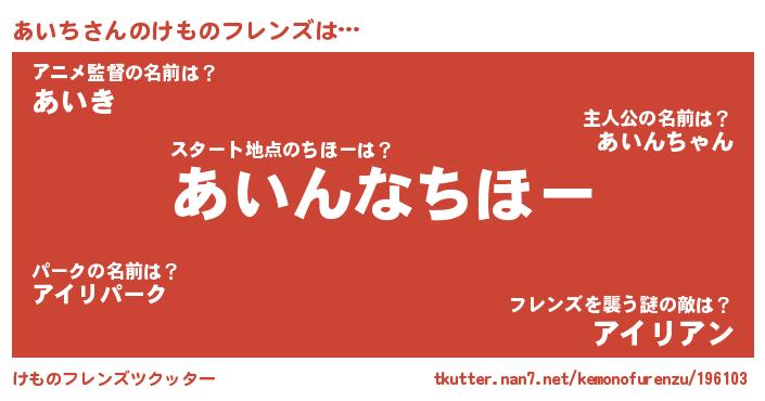 | 2回繰り返すあだ名 | 『ああいい』『じんじん』『ちびちび』 |