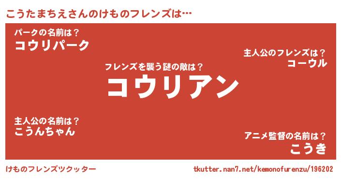 | 肩書あだ名 | 『こうたまちえ中将』『こうたまちえ助手』 |
