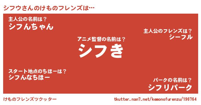 | 意味不明あだ名 | 『とにかく怪しいシフウ』『自称シフウ』 |