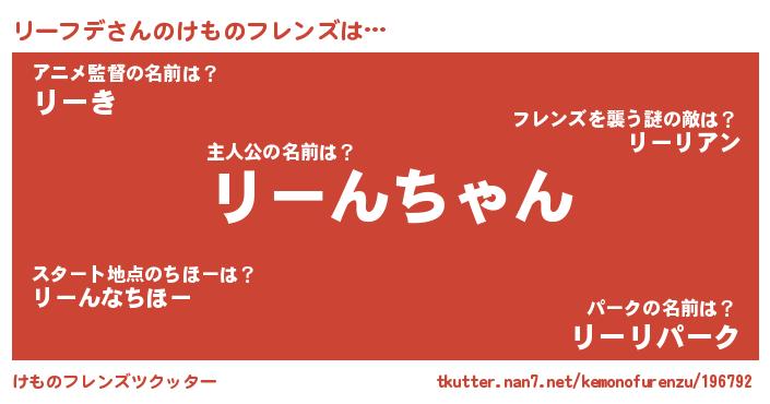 | 意味不明あだ名 | 『ペロリンリーフデ』『自称リーフデ』 |