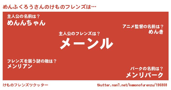 | ヘコむあだ名 | 『めんふくろう(小並感)』『めんにー』 |