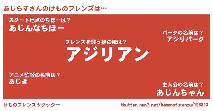 | ヒーロー風カッコイイあだ名 | 『慈愛の使者あじらす』『仮面アジダー』 |