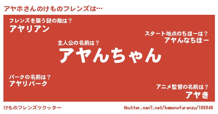 | ピコ太郎風あだ名 | 『アコ二郎』『アア太郎』『アヤ六郎』 |