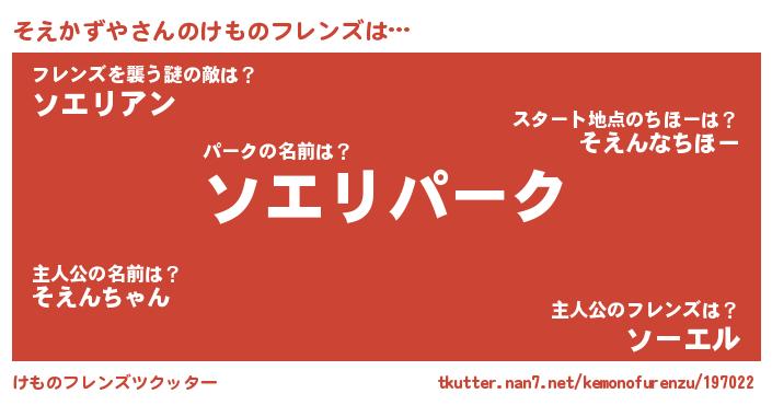 | 意味不明あだ名 | 『住所不定無職そえかずや(98歳)』 |