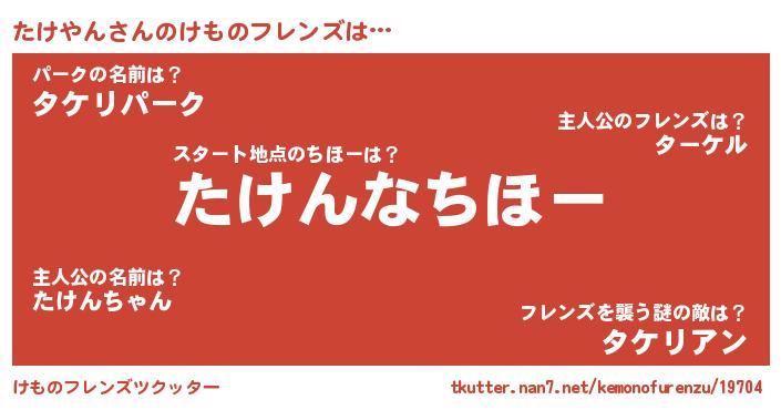 | ファンタジー風あだ名 | 『エターナルタケヤンー』『ゼタケトゥ』 |