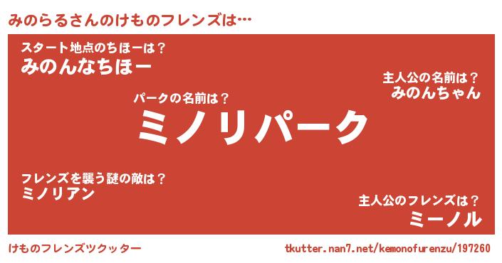 | 意味不明あだ名 | 『自称みのらる』『みのらるフォーエバー』 |