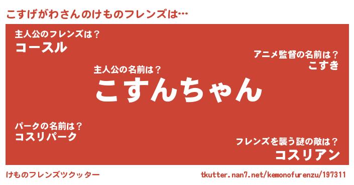| 可愛いあだ名 | 『こんこん』『こすげがわママ』 |