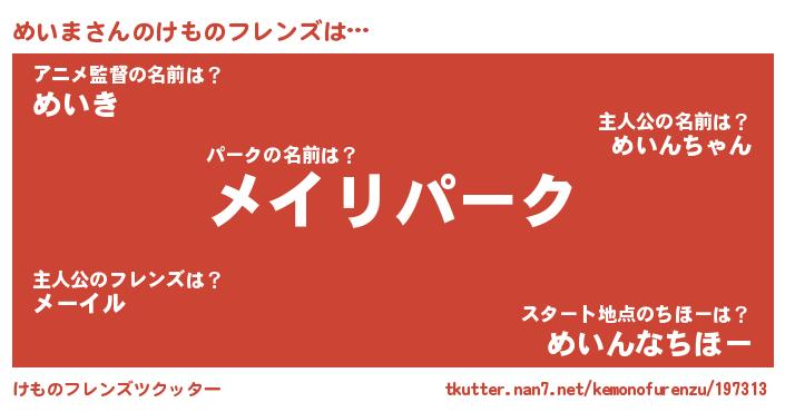 | 意味不明あだ名 | 『自称めいま』『しいたけ科めいま属』 |