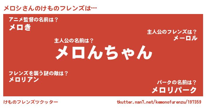| 男性向けラノベタイトル風あだ名 | 『この素晴らしい世界にメロシを!』 |