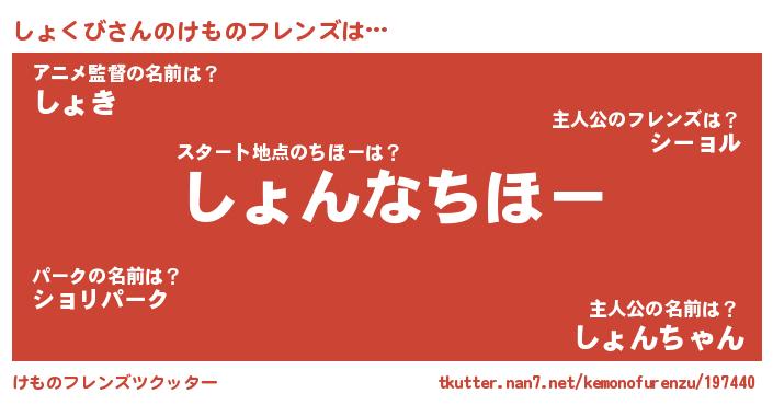 | 2回繰り返すあだ名 | 『ししょょ』『いちゃいちゃ』 |