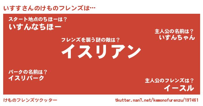 | 意味不明あだ名 | 『ヨモギ科いすす属』『永久保存いすす』 |