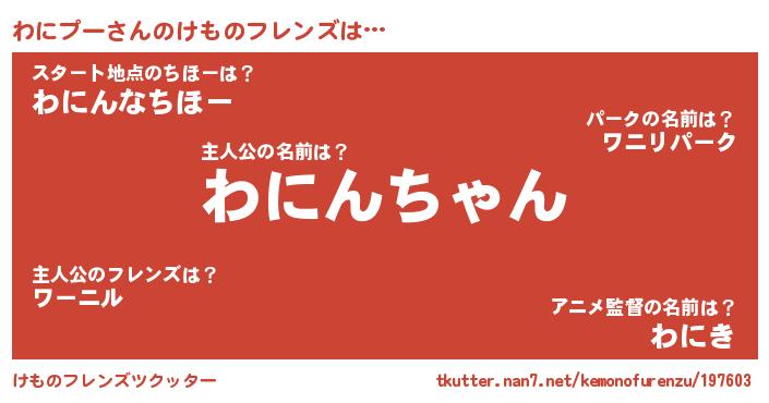 | 2回繰り返すあだ名 | 『わにわに』『わわにに』『ちくちく』 |