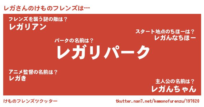 | 意味不明あだ名 | 『住所不定無職レガ(1歳)』『自称レガ』 |