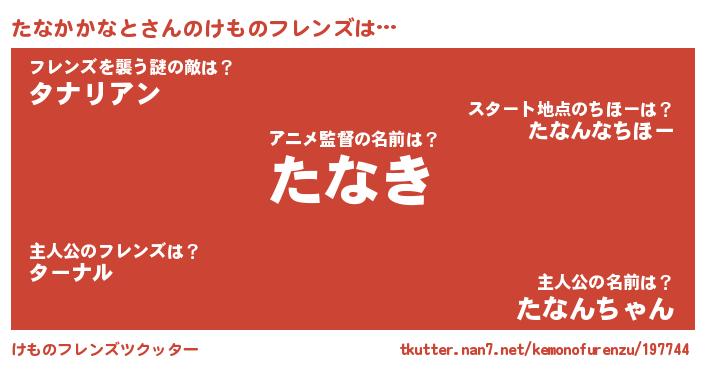 | 男性向けラノベタイトル風あだ名 | 『この素晴らしい世界にたなかかなとを!』 |