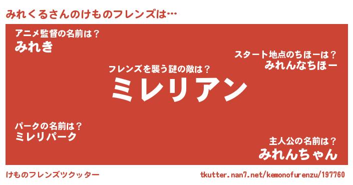 | 意味不明あだ名 | 『住所不定無職みれくる(85歳)』 |