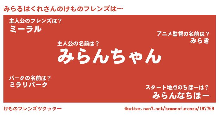 | 男性向けラノベタイトル風あだ名 | 『みらるはくれに滅ぼされるだけの簡単なお仕事です』 |