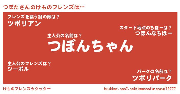 | 2回繰り返すあだ名 | 『つぼつぼ』『べろべろ』『つつぼぼ』 |