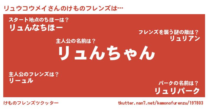 | 2回繰り返すあだ名 | 『リュリュ』『リリュュ』『もろもろ』 |