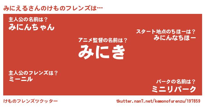 | 2回繰り返すあだ名 | 『たんたん』『ぬるぬる』『みにみに』 |