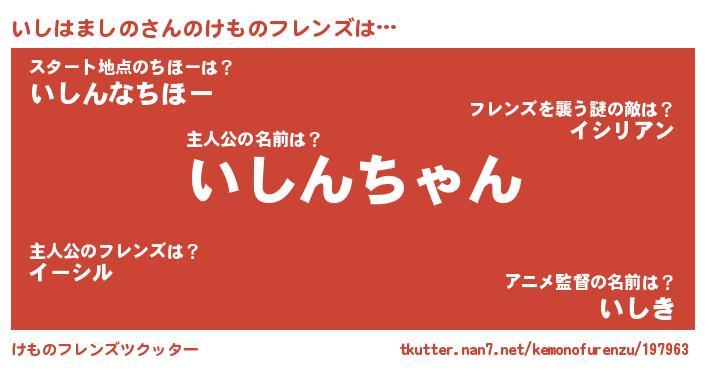 | ピコ太郎風あだ名 | 『イコ三郎』『ピイ六郎』『イシ次郎』 |