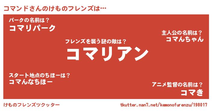 | ヒーロー風カッコイイあだ名 | 『慈愛の使者コマンド』『黄金騎士コマ』 |