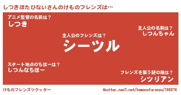 | ヒーロー風カッコイイあだ名 | 『ネオシツキホタヒナイ』『黄金騎士シツ』 |