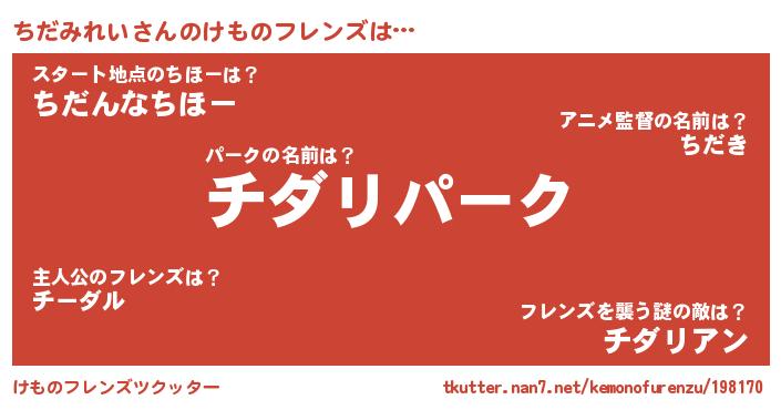 | ヒーロー風カッコイイあだ名 | 『超時空戦士チダミレイ』『幻影騎士チダ』 |