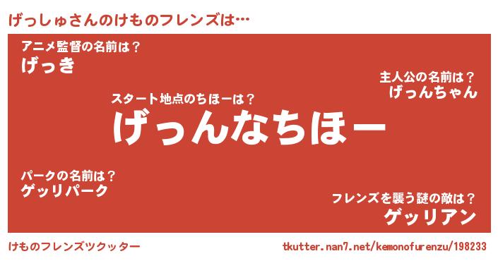 | 2回繰り返すあだ名 | 『げげっっ』『ちゃかちゃか』 |